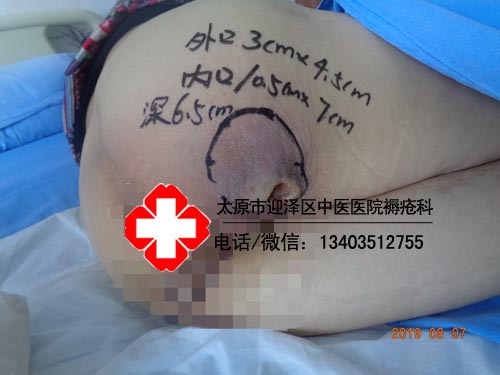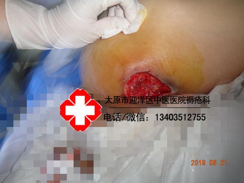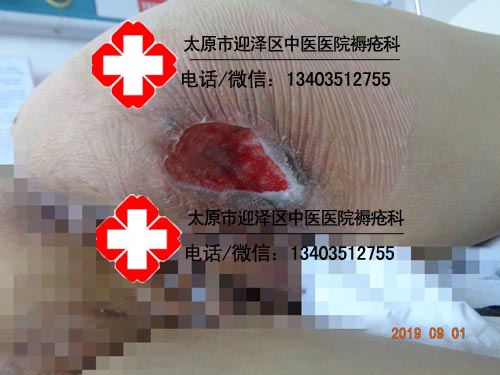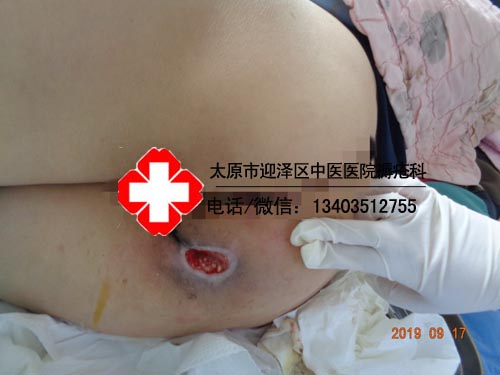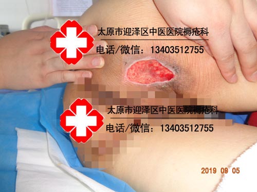 侯某某 ,女,56岁,山西省忻州人,两侧坐骨结节褥疮,与2019年8月7日入住太原市迎泽区中医医院褥疮烧伤科,褥疮科突出中西结合特色:西医方面重点突出VSD快速稳定解决骨髓炎骨膜长肉的问题;中医方面突出“湿润疗法”、“煨脓生肌法”,使疮面快速愈合,尤其是将传统“麝香拔毒膏制作技艺”运用于临床,患者于2019年10月2日治愈出院。