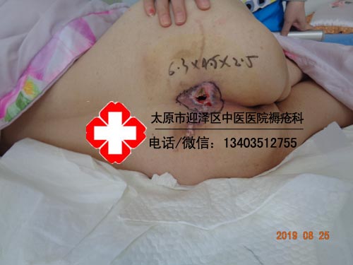 王某某,女,83岁,太原市人,骶尾部褥疮,于2019年8月25日入住太原市迎泽区中医医院褥疮烧伤科,经我科非物质文化遗产项目麝香拔毒膏及生肌愈合膏和外科回阳膏等系列中西医治疗,特别是特色疗法煨脓生肌法,“煨脓生肌”换药法是中医外科外治过程中的独特经验,是指在创面愈合的中后期阶段,运用硬膏和软膏,经皮肤和创面对药物的吸收,促进局部的气血通畅,增强其防御能力,使创口脓液渗出增多,载邪外出,从而达到促进创面生长的目的。此法一是使创面和药膏形成一种瘟愤之气,达到提脓祛腐拔毒,增加局部脓液的渗出;二是渗出的脓液有助于创面肉芽,皮肤的生长,祛腐生肌。治疗二个多月患者于2019年11月16日伤口愈合出院。